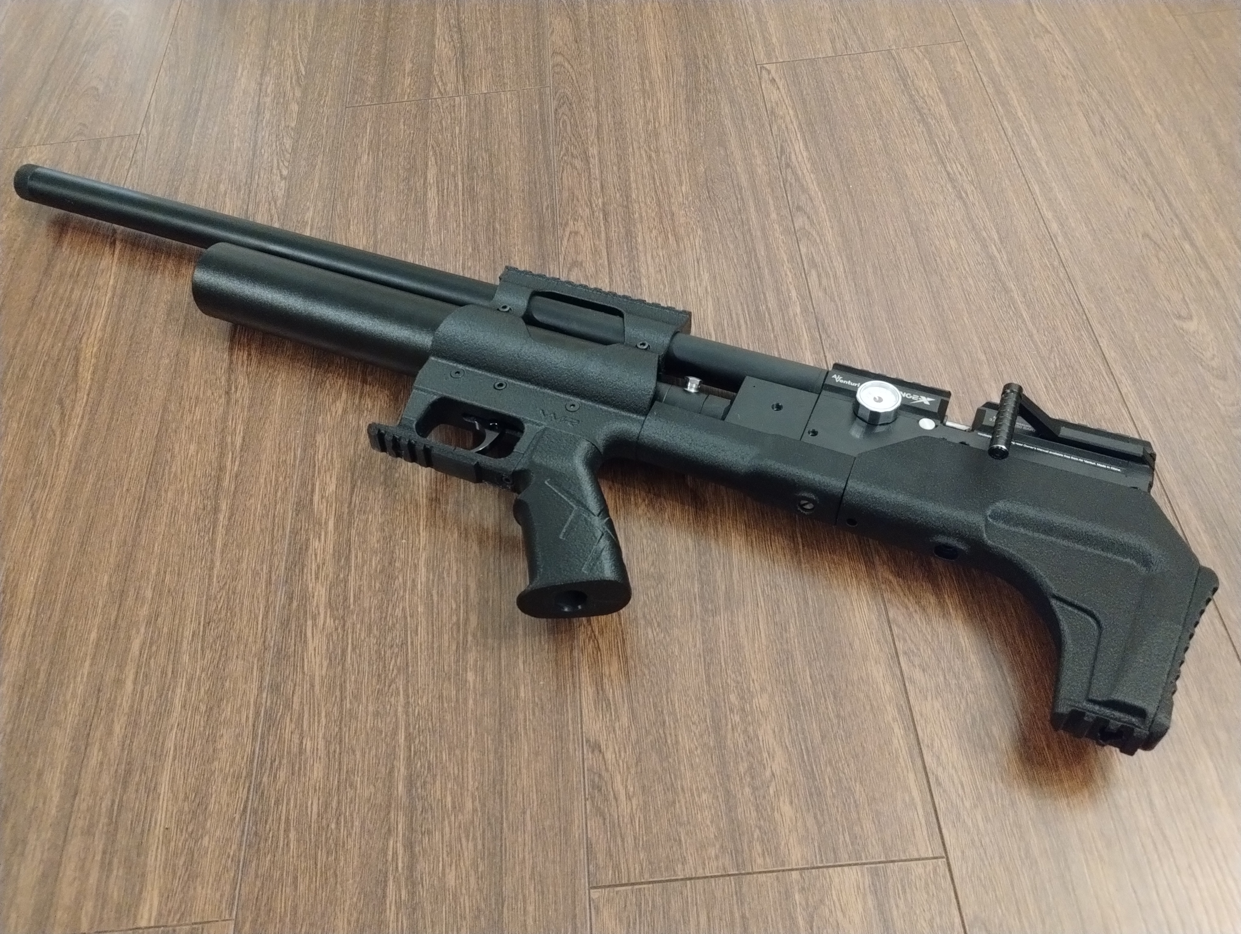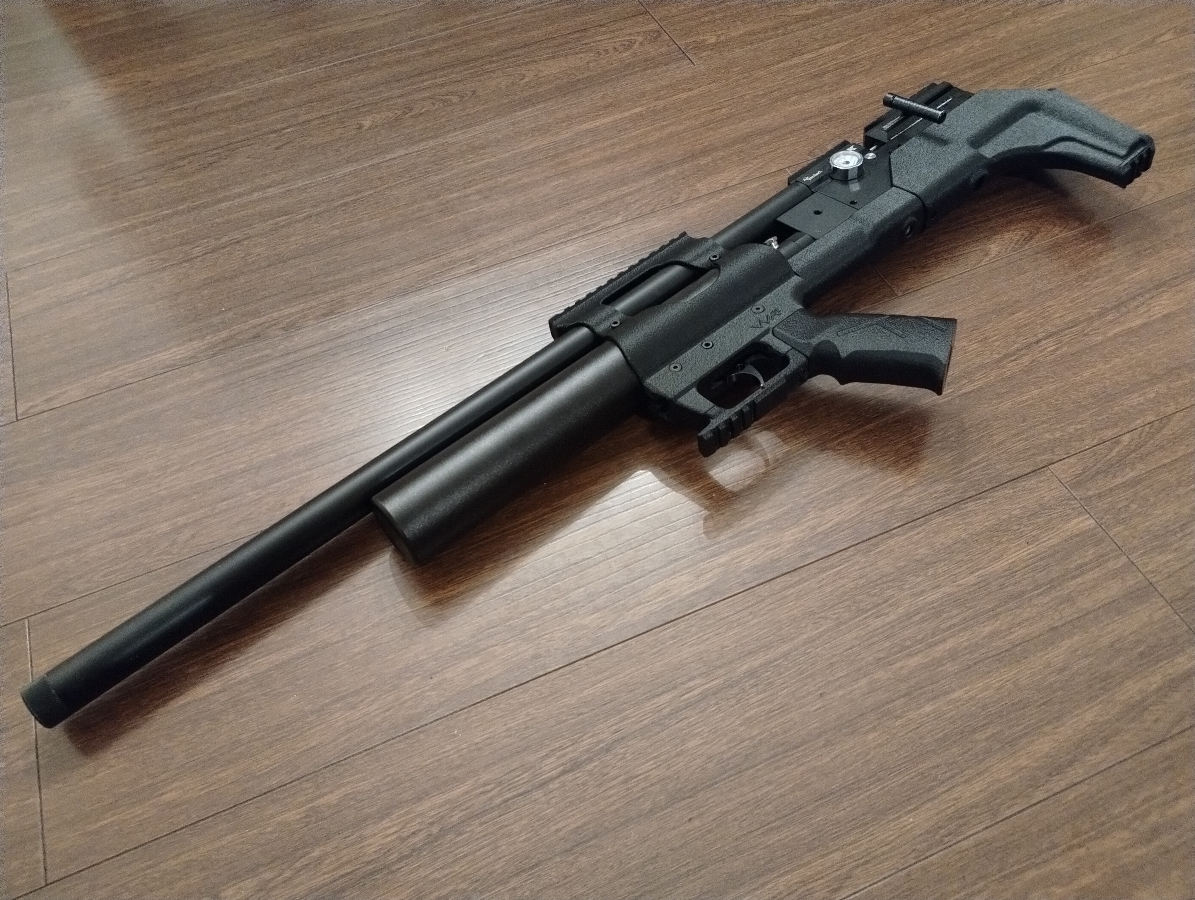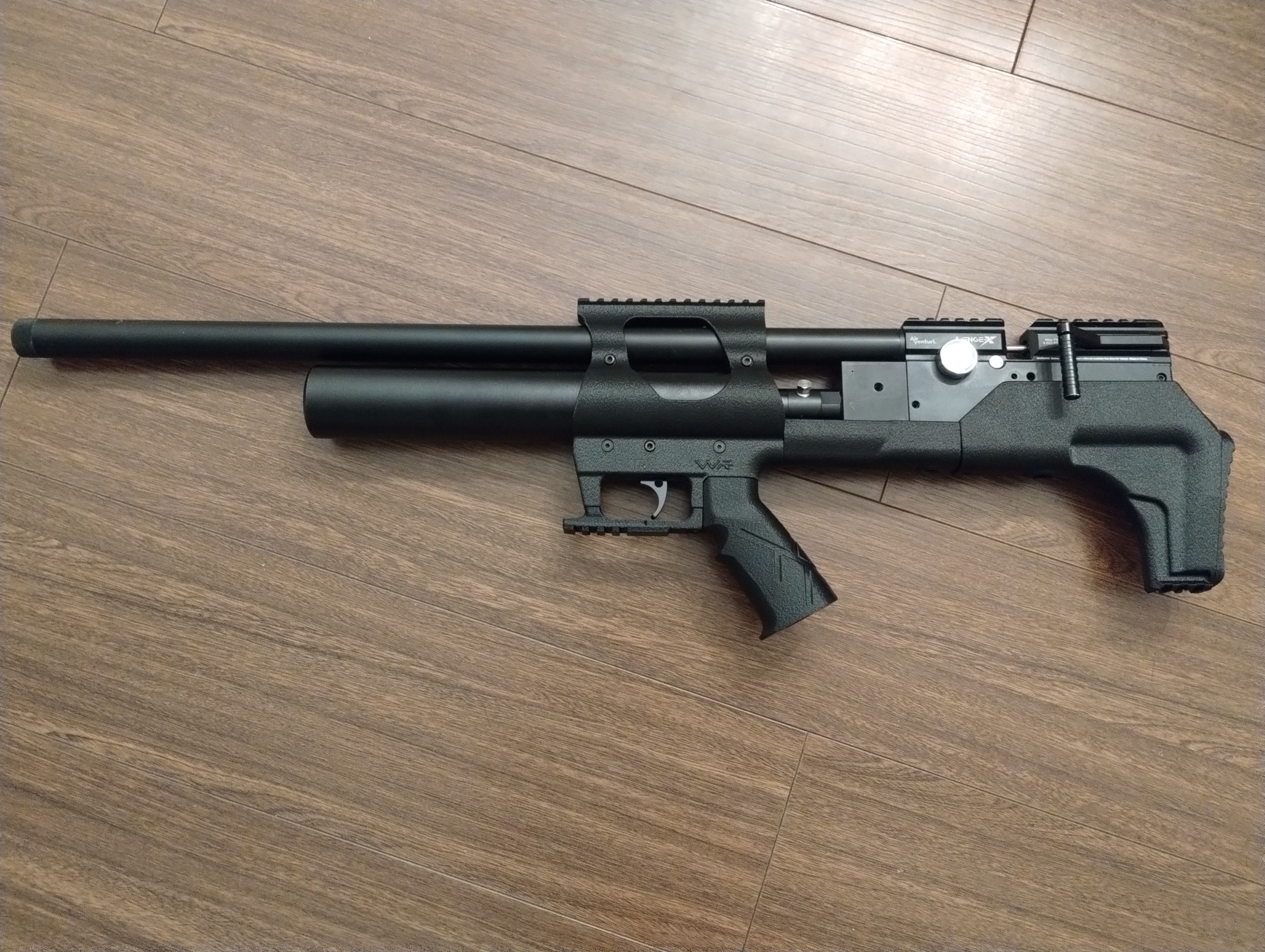 Kit Bullpup para rifle PCP Avenge-x (formato carabina). Incluye sistema de gatillo, riel para mira de 22mm, riel de 20mm en el guardamonte, riel de 20mm para bipode y culata de polímero. El kit pesa 370 gramos. Bajas un kilo aproximadamente al rifle.