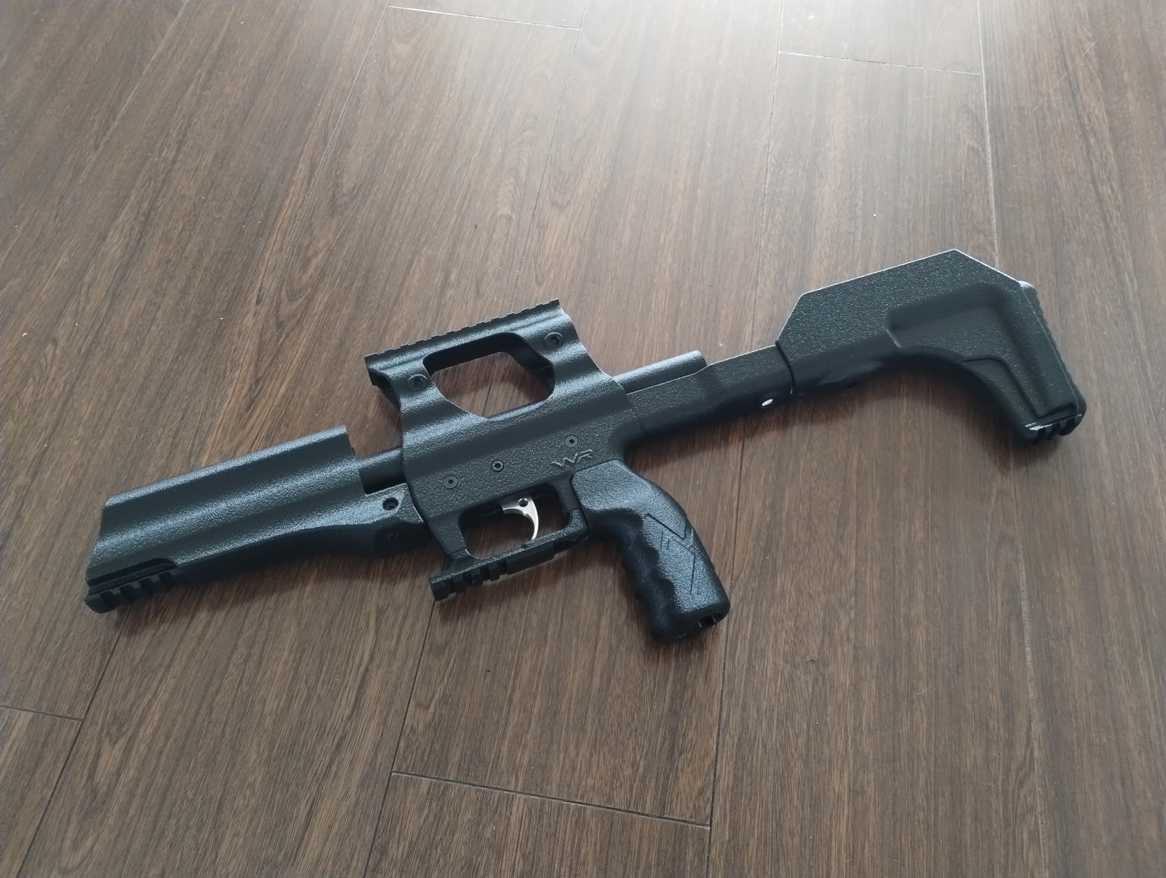 Kit Bullpup para rifle PCP Leviathan R1. Incluye sistema de gatillo, riel para mira de 20mm, riel de 20mm en el guardamonte, riel de 20mm para bipode, guardamano y culata de polímero. El kit pesa 370 gramos. Bajas un kilo aproximadamente al rifle.